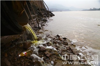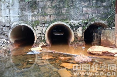 Bentley零件泰朗鋼管廠區背后,一根德系車零件直徑約 2 米的管道將亮黃色污水排入甌江。